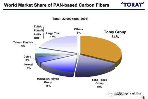 ④主要生产商:日本和美国掌握着世界碳纤维的大多数产能,并控制了碳纤维的生产。